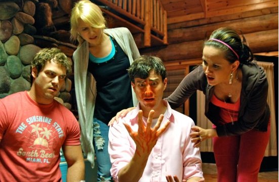 A Little Bit Zombie starts off with Max (McHattie) and Penelope (Ullerup), a pair of zombie hunters that use a mystical orb to help track their targets, in the middle of a zombie swarm. After the carnage we follow, through first person camera, a mosquito full of zombie blood fly around in search of a target. We meet Steve (Turner), Tina (Lowe) his fiancé, Craig (Roberts) his best friend and upcoming Best Man, and Sarah (Hager) Steve’s sister who is also Tina’s unwitting Matron of Honor and Craig’s wife. The foursome is on their way to Steve and Sarah’s family cottage for a weekend of bonding and relaxation before the wedding. Our mosquito friend attacks Steve, repeatedly, which sets off the events of the film, with Steve slowly turning into a zombie and developing a lust for brains. In fact, Steve develops a certain hilariously grotesque response to even the word ‘brains’. The “family” must decide what to do and how to handle what is happening to Steve, all while Max and Penelope start tracking the strange readings that will lead them straight to him. Tina proves she is willing to go to extreme lengths to protect her man and her upcoming nuptials, dragging Sarah along with her, while Craig has the hardest time dealing with the situation. Everything leads to crazy confrontation with a deadly outcome.
