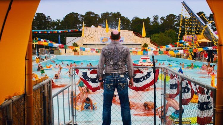 Piranha 3DD starts with a recap of the first film’s events, via a news report styled montage, which explains what has happened to Lake Victoria since the end of the first film. After a short diversion, in which Gary Busey delivers his two days of work on the film as a doomed hillbilly, we arrive at our new setting, a water park named Big Wet. Maddy (Panabaker) has arrived home from her year at school to discover that her Step Father Chet (Koechner) has transformed her late mother’s water park into an adult themed park complete with ex-strippers as lifeguards and a “adult pool”. Unfortunately for Maddy, Chet owns 51% of the park, she has no option but to help get set up for the new season. After a comically bad attack on a pier (that sadly is not played for laughs) Maddy, her ex-boyfriend, Deputy Sherriff Kyle (Zylka), and her geeky best friend that has been in love with her for years, Barry (Bush), track down Carl Goodman (Lloyd from the first film). Goodman tries to explain the implausible premise of the Piranha attacking in a water park and warn the group to shut the park down prior to the big season opening the next day. Of course this does not happen and chaos, including an extended David Hasselhoff cameo as himself and the return of Deputy Fallon (Rhames), reigns as the park runs red with blood.
