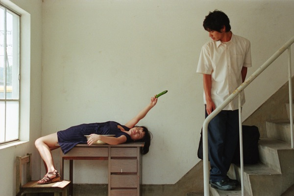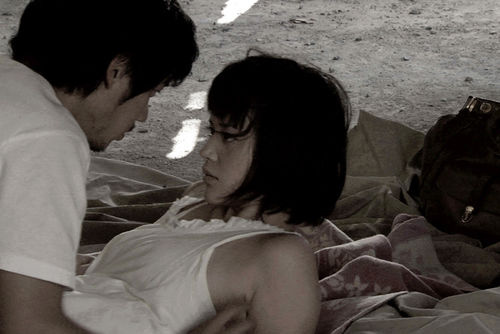 Noburo (Manabe) is having quite the string of bad luck. After losing his job when his boss closes the company and runs away during the night, Noburo goes back to the company office and breaks in as he now needs a place to live. Shortly after breaking in Noboru receives some visitors in the form of the local Yakuza looking for their payout. Seeing Noburo in the office they assume he is a delegate of the company and demand their money. Noburo manages to escape and runs away to the country where he has a friend who acts as a building landlord. After setting up in one of the apartments Noburo meets the strange inhabitants of the building including the beautiful but mainly catatonic Miyuki (Seto). Miyuki seems to be content to drink away most of the days and can be seen in her catatonic state all over the building – oh and did I mention that she in convinced the “growth” on her back is actually a set of wings breaking out to the surface? Nobuoro starts a job as a safety guard, basically keeping people clear of construction areas which are inhabited by even more quirky characters. As Noburo and Miyuki’s relationship develops and the Yakuza start to close in, more details come to light from Miyuki’s past that might just send Noburo off and running again.