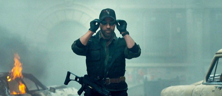 The Expendables 2 is a lot more fun than its predecessor, utilizing an over the top, tongue in cheek attitude that was lacking from most of the first film. Expendables 2 knows it’s going to be silly and violent with deaths galore and rehashes of all of your favourite 80/90’s catchphrases. The script contains some utterly ludicrous dialogue, but that’s not what you are seeing this for, is it? Stallone and crew deliver exactly what you’d expect them to, with a little more character development, but not enough to slow down the explosions. Schwarzenegger is around for pretty much an extended cameo this time around, spouting competing catchphrases with Willis gleefully and blowing away bad guys with a gun liberated from Crews’ Caesar. New additions Hemsworth and Yu have little to do here as the main good guy crew is already established from the first film and they never manage to fully integrate into the line-up. Jean-Claude is deliciously evil as the antagonist of the film, he’s a real joy to watch on screen, and Adkins is very menacing, while his final fight with Statham is fantastic. But now we come to the real reason to watch this film – Chuck Norris.