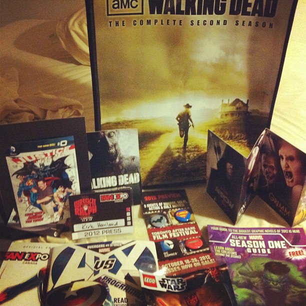 Next stop was the Anchor Bay booth where I acquired some goodies: a walking dead bag and some mini posters. It was there that I bumped into Justin McConnell, director of The Collapsed and curator of the Litttle Terrors Monthly Series that until recently was held at the east end rep cinema house, The Projection Booth. But as of September 19th the series will be re-launching in its new home in the heart of downtown, the Rainbow Cinemas Carlton. To celebrate they have instituted a ‘Best Of Little Terrors’ tour that launched at Fan Expo with two sold out standing room only showings on Friday and Saturday. I will have more on this tour and the films associated with it in the near future.