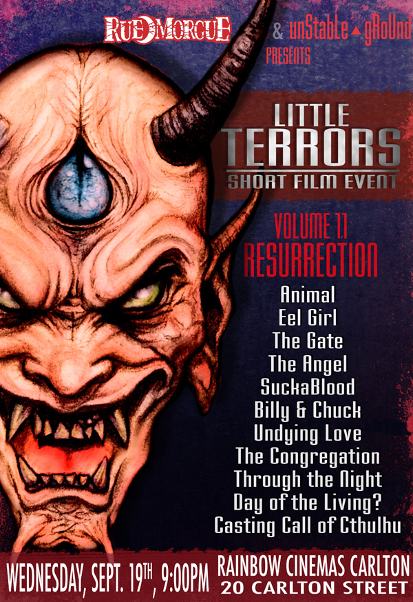 Bringing aboard programmers Christian Burgess from The Toronto After Dark Film Festival, April Snellings from Rue Morgue Magazine and Michael Pazst from Raven Banner Entertainment, Justin has moved into the Magic Lantern Cinema Carlton at College Subway station right in the heart of Downtown Toronto. The series re-debuts this Wednesday Sept 19th with a line-up of all new shorts for the Toronto public: