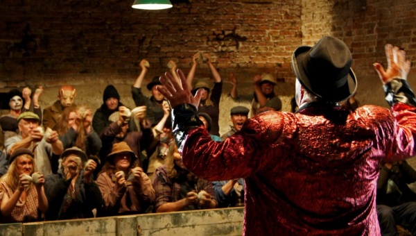 Inbred starts with two social workers, the overly eager Jeff (Doherty) and the more jovial Kate (Hartley), along with their four charges arriving in the small town of Mortlake. The four young offenders have been taken out to the countryside for a weekend of character-building. After meeting the tavern owner Jim (O’Neill) and the eccentrically creepy townsfolk inside “The Dirty Hole,” the group decides the smarter move is to stick to themselves and ignore the people surrounding them. But after a minor incident with pack of particularly hostile locals, the group finds themselves in the middle of a rapidly escalating, blood-soaked, warped nightmare. It seems that the villagers of Mortlake like to amuse themselves by staging a circus-like performance in which the unwilling stars are bound, tortured and killed in ways involving farm equipment, animals and good old-fashioned blunt objects. But this time the prey fights back.