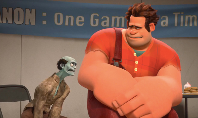 Wreck-It Ralph is a sweet and endearing story that will delight gamers and non-gamers alike. The story and script are unique and smart, incorporating games and electronic accessories like a simple power bar in ways that have never been seen before onscreen. By allowing characters to go between games as well the filmmakers incorporate things into other games you would never see. Like Pac-Man ghost Clyde hosting a ‘Bad-Anon’ meeting inside the center box of the Pac-Man board with participants like Street Fighter’s Zangief and M. Bison, Dr. Eggman and Mario’s longstanding nemesis Bowser. The concept behind game central station is inspired and leads to some of the best cameos in the film.